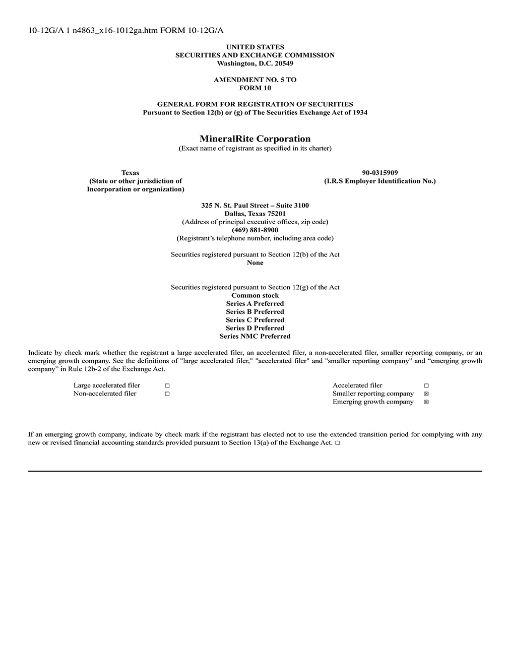 MINERALRITE CORPORATION
